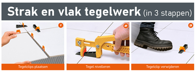 De stevige clips, herbruikbare wiggen en krachtige tang vormen samen een slim systeem dat de tegels nauwkeurig op gelijke hoogte brengt.